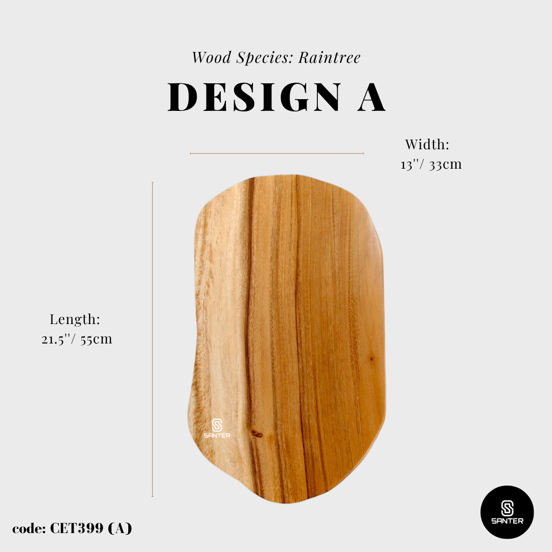 - Odd shape, whole-pieced Raintree wood and natural wood grain patterns