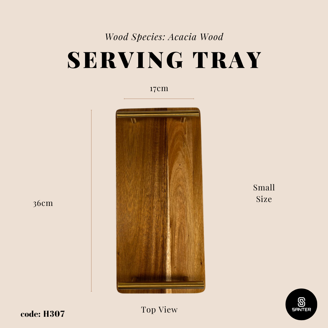 - 100% premium food grade wooden serving tray made from Acacia wood with golden handle.